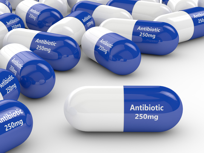 3d rendering of antibiotic pills over white